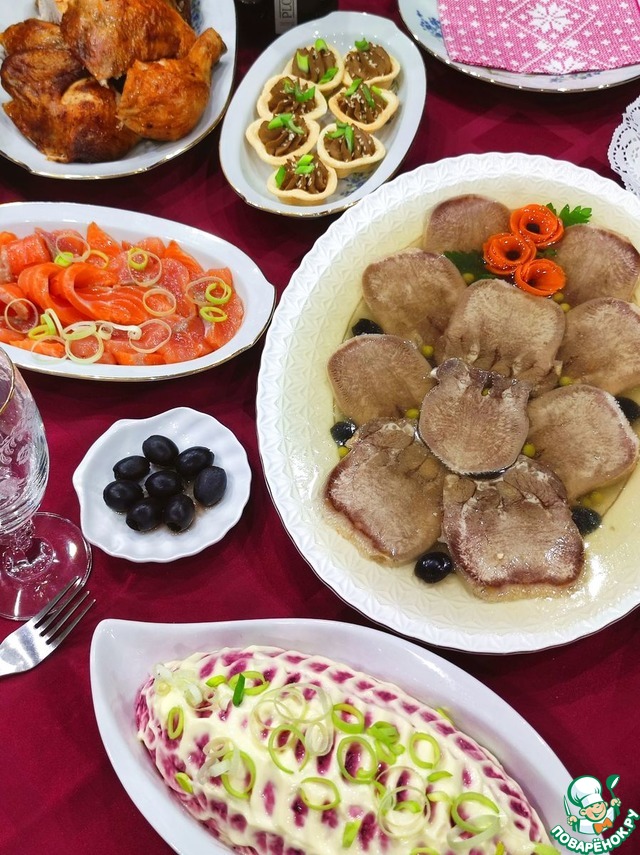 Спасибо, Света. Да все так, по простому, изысков не было вобщем то. Были только близкие и родные люди, а их вкусы я знаю. Сын сразу попросил сделать заливное из языка, он его любит. Учла все пожелания. Рыбку под шубой даже не попробовали, кушали уже первого января.