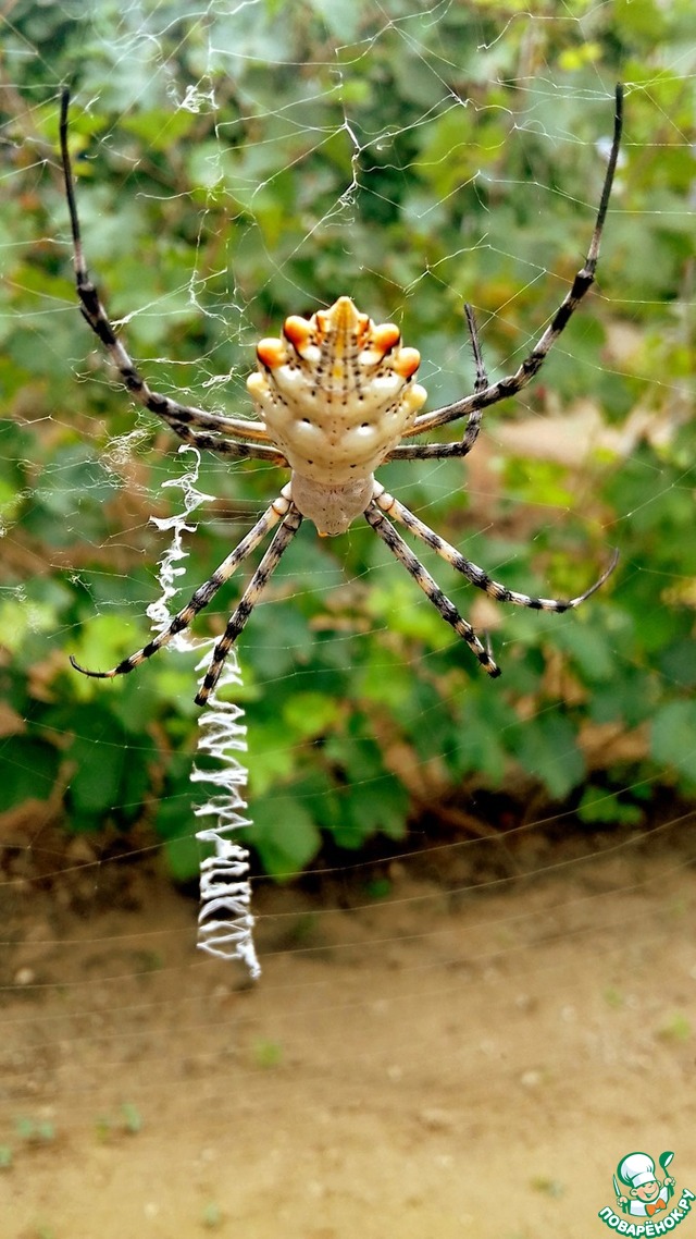 Оказалось, что наша паучиха редкая заморская красавица, родом из Алжира, а на этом фото над ней сидит вовсе не младенец, а жених!