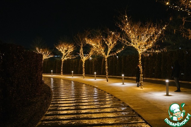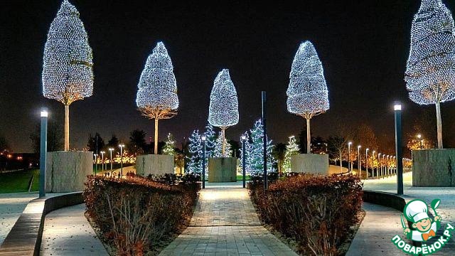 Светящееся полотно из сотен ниточек – огней. Смотрится, будто непрекращающийся ледяной дождь. Невероятно!