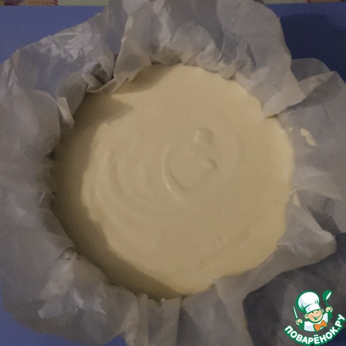 Форму обязательно выслетить силиконизированной бумагой для выпечки.Тесто перелить в форму,слегка постучать формой по столу чтобы вышел воздух.