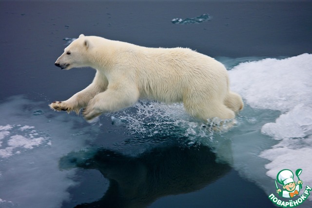 Белый медведь прекрасно обходится без питьевой воды: всю необходимую влагу организм животного получает вместе с добычей.