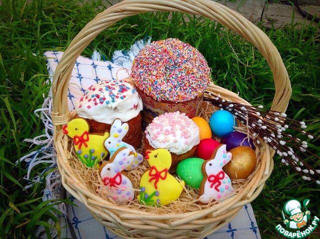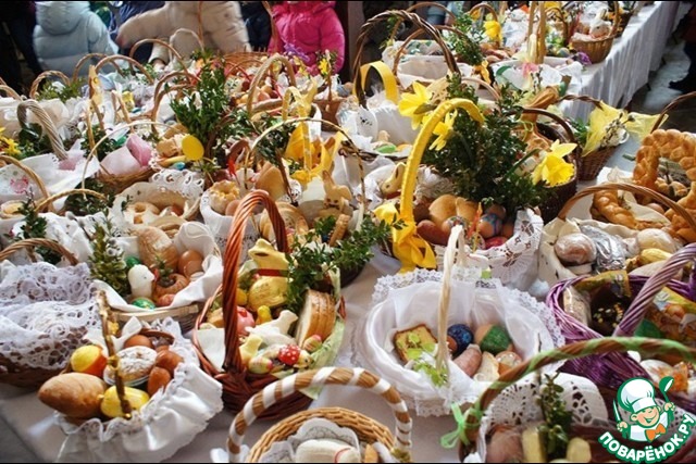 Это и есть основные компоненты пасхальной корзинки, предусмотренные церковными канонами. Миряне еще добавляют в свои корзинки пшено и мак, а также пирожки с капустой или печенью.