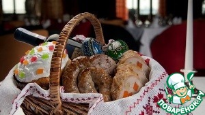 Мясные деликатесы. Ветчина и колбасы, сало и буженина – любые блюда из свинины можно класть в праздничную корзинку. Существует несколько объяснений символике мясного характера. Такие блюда связаны с жертвенным ягненком, который был заколот отцом по возвращению сына.