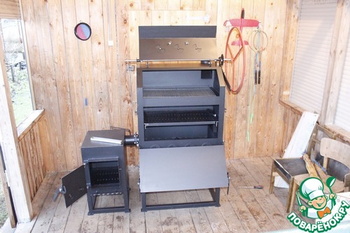 Продукты готовятся в специальной двухкамерной установке, называемой смокером, при низкой температуре длительное время. Кстати, английское слово smoking иногда переводят на русский, как копчение, но по-моему, это не совсем корректно. Все же наше, российское копчение, и техасское барбекю – это несколько разные технологии. Достаточно сказать, что оптимальной для техасского барбекю считается температура в 110-130 градусов Цельсия, в некоторых рецептах до 160. Думаю, что мало у кого в России коптильни работают при таких температурах.