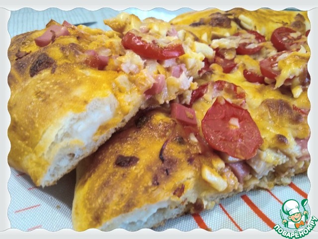 Ну никак не могла я пройти мимо рецепта. Готовила половину нормы. Тесто, и правда, получилось ооочень нежное, липнущее. Я смазывала руки маслом. Конечно, никакой скалкой не пользовалась, только руками размазывала тесто по коврику, помогая себе силиконовой лопаткой «прикапывать» плавленый сырок. Начинка была сборная из копченой курочки, сыра косичкой и ветчины. Сверху обычный сыр. Пекла 25 минут при 180 градусах. Получилось ооочень вкусно! А эти хрустящие сливочно-сырные краешки просто сводили с ума. Короче, съели все сразу.
