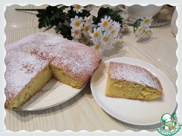 Захотелось приготовить простой без всяких заморочек пирожок. Делала все по рецепту. Получилась вкусная основа под тортик. Хотя и с молочком очень вкусно. Пекла 35 минут при 180 градусах.