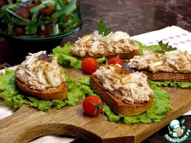 Брускетта с тунцом, сыром и луком, автор Мария По