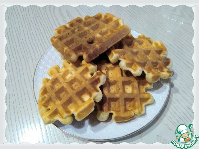 Хоть по словам автора, этот рецепт прост и без изысков, результат очень вкусный. Я не отделяла белки от желтков, а все вместе взбила, молоко добавляла на глаз, далее по рецепту. Получились вкусные вафли. Отлично пошли с молоком!