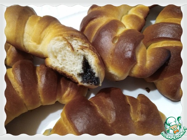 Давно поглядывала на рецепт, но только сегодня им воспользовалась. Внесла некоторые изменения: вместо пахты брала молоко и сливки 10%, в тесто использовала лишь 1 яйцо, верх булочек смазывала просто молоком, начинка была готовая маковая (2 пакетика). Тесто замешивала в планетарном миксере, получилось очень мягкое и нежное. За 1 час отлично выросло. Работать с ним было в удовольствие. Тонко раскатывалось, легко сворачивалось. Для удобства слегка смазала стол и руки маслом. Выпекала 20 минут при 180 градусах. Получилось 18 штук замечательных, нежнейших, воздушных рогаликов! Оооочень вкусно! Рецепт забираю в любимчики!!!