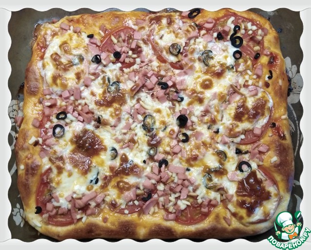 Решила воспользоваться рецептом, но делала такую макси-пиццу, то есть одну большую. Тесто очень хорошо выросла за час. Начинка немного другая (кетчуп, сыр, докторская колбаса,), ананас даже не пыталась добавить, мое семейство просто не будет есть. Поэтому пришлось не совсем точно готовить по рецепту. Получилось в итоге вкусно, сытно. Семья довольна. Выпекала 25 минут при 180 градусах.