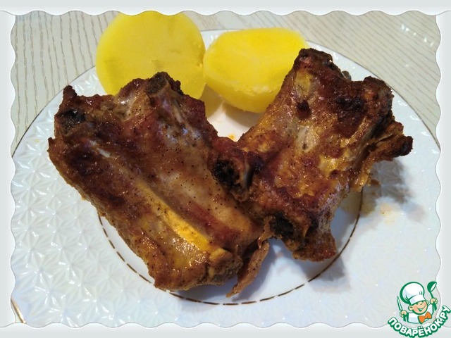 Поспешила и сразу смешала специи с соусом и потом все перемешала с ребрышками. Делать нечего, поместила все в пакет для запекания и запекала при 180 градусах 30 минут, потом открыла пакет и еще держала в духовке 20 минут. Получилось очень вкусно.