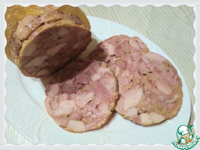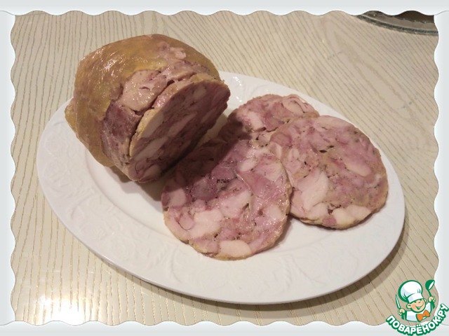 Осваиваю ветчинницу и пока муж в коротком отпуске стараюсь побаловать его вкусненьким. Готовила из 4 окорочков, как раз получился 1 кг мяса. Желатина только 18 г оказалось. Специи на свой вкус. Читая комментарии, решила добавить 50 мл воды. Далее все мясо хорошенько помассировала и в пакет. Ветчинницу уложила в мультиварку, залила водой и готовила 1 ч 40 минут. Потом охладила водой и в холодильник остывать прям в ветчиннице. И вот результат. Видимо, зря я добавила воду, так как желе все опустилось на дно, а так хотелось, чтобы оно обволакивало рулет. Но получилось вкусно, а это главное. В общем, самый долгий процесс – это отделить мясо от косточек. Со специями еще поэкспериментирую.