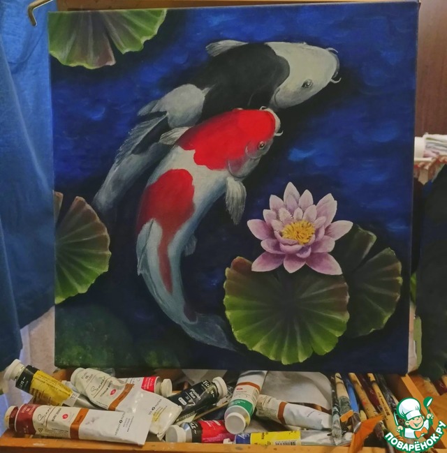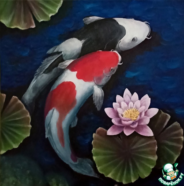Моя работа. Карпы кои. Пара. Холст. Масло.