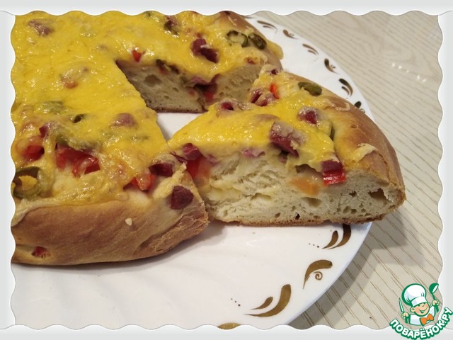 Рецепт привлек внимание главным фото. Очень красиво и аппетитно. Вот я и испекла. Готовила половину нормы. Муки ушло 210 г. От себя добавила парочку сосисек и оливки. Пекла 20 минут при 180 градусах, потом натерла сыр и еще на 5 минут в духовку. Получился очень вкусный пирог. Семья осталась довольна.
