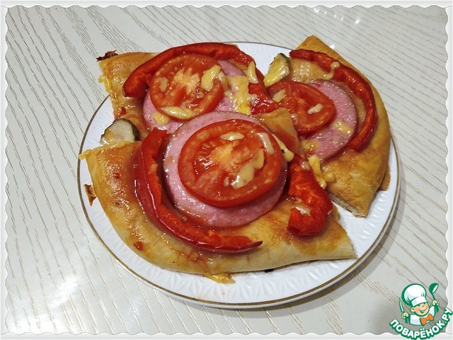 Так как не было необходимости в штучной выпечке, то пекла в форме лепешки. Муки ушло меньше (150 г), гречневую тоже использовала. А вот с начинкой поэкспериментировала. Добавила еще маринованный огурчик. Получилось вкусно. Краешки хрустящие.