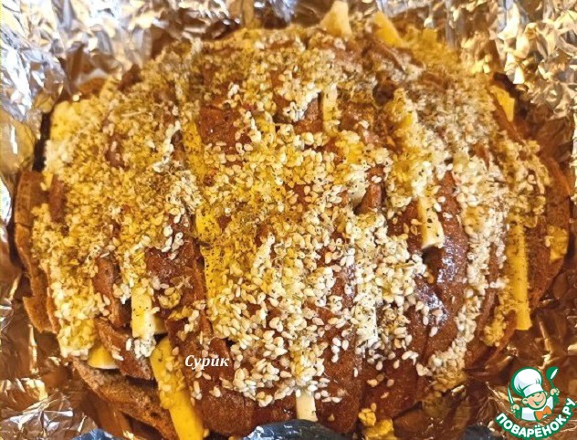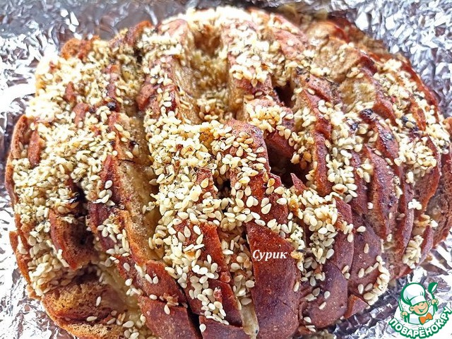Очень вкусный хлеб! Ароматный, сырный! На природе… не оторваться от него! Кунжута много, а сверху посыпать петрушкой …забыла. Но нам и так было очень вкусно.