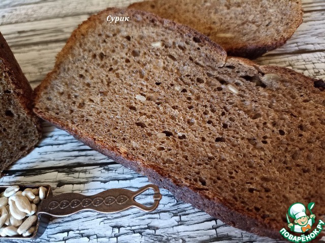Великолепный хлебушек! Очень и очень вкусный! А какой аромат! Я добавила 250 г муки пшеничной, а 50 г цельнозерновой. Остальная мука по рецепту. Добавила ещё 0,5 ч.л. молотого тмина. Любим мы его аромат. Тесто делала в ХП.