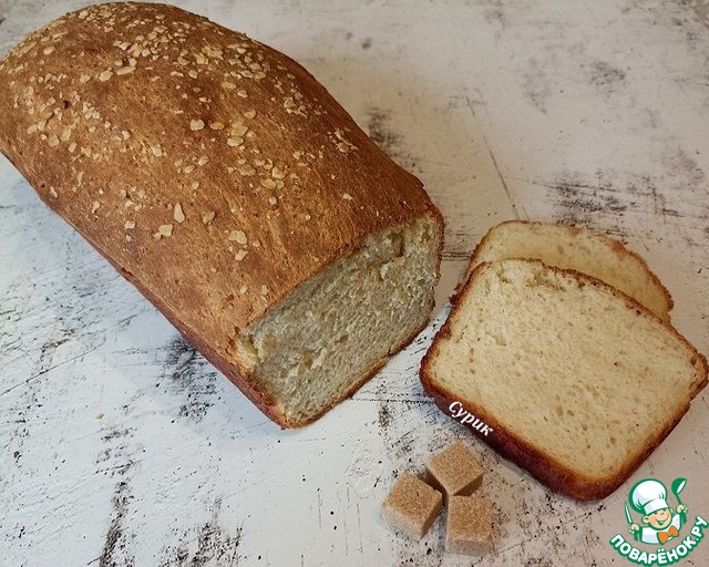 Тесто я делала в ХП, выпекала в духовке. При замесе добавила ещё 2 ст.л. молока. Все остальные ингредиенты по рецепту. Нам очень понравился хлеб, нагурманились! Супер!
