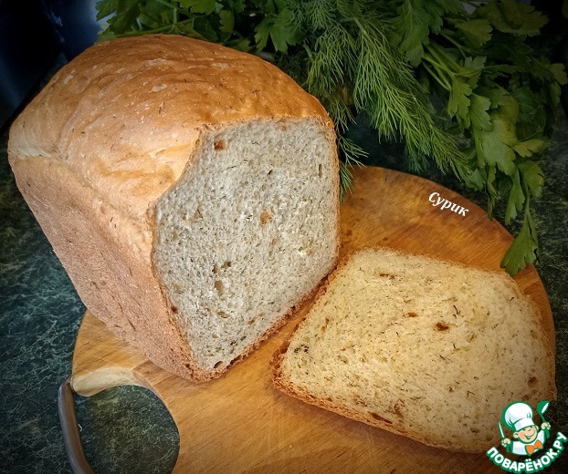 Очень и очень вкусный хлебушек получился! Пышный, воздушный, отлично нарезается. Я добавила сушеный репчатый лук и укроп. Какой же аромат! Муки ушло 350 г, взвешивала.