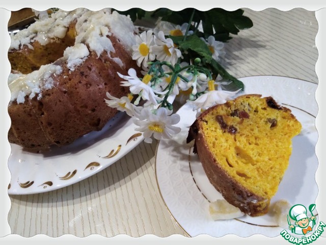 Специально купила тыкву, чтобы испечь пирог. Готовила точно по рецепту, выпекала 50 минут при 180 градусах. Пирог получился в меру влажным. А вот с помадкой у меня не получилось. Уже через 7 минут она сильно загустела, хотя и готовила на медленном огне, а после взбивания сразу стала практически сухой. Еле-еле намазала, а вернее выложила ее на пирог. То, что осталось на блендере и ноже, счистила, добавила чуть воды и снова прогрела. Залила. Ну, в общем вот все как-то так получилось.