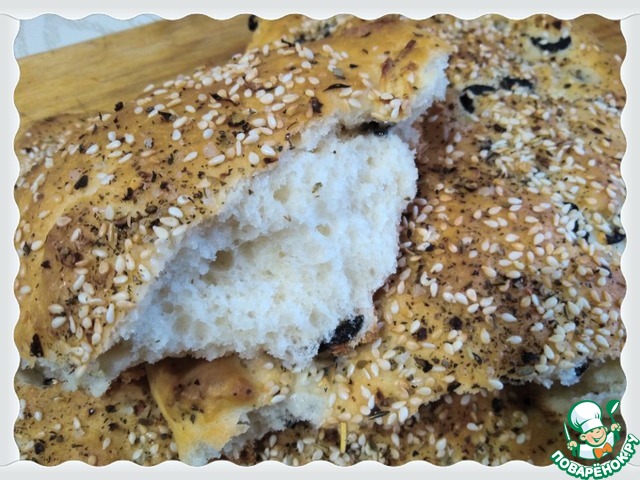 Муки у меня ушло чуть больше. Уж очень тесто липло. Но решила больше не забивать, лишь чаще смазывала руки маслом. Фенхеля у меня нет, добавила прованские травы. И сверху посыпала морской солью с перцем. Выпекала две лепешки 25 минут. Одну прикрыла, вторую оставила остывать так. Но если честно, не стала ждать, попробовала фокаччу еще теплой. Очень вкусно! А с фетой да с кофе так это вообще бомба!