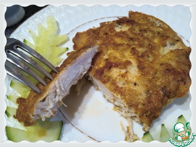 Приготовила на ужин. Получилась замечательная нежная грудка. Кляра оказалось многовато, при последней закладке просто вылила остатки в сковороду.