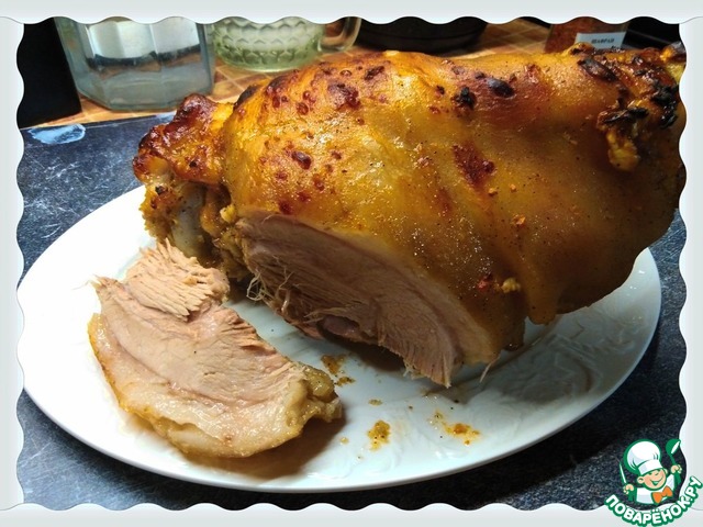 Варила рульку дольше, где-то 2,5 часа. Была она большая очень. Далее все по рецепту, но без майорана (не было в наличии). Получилось вкусно!
