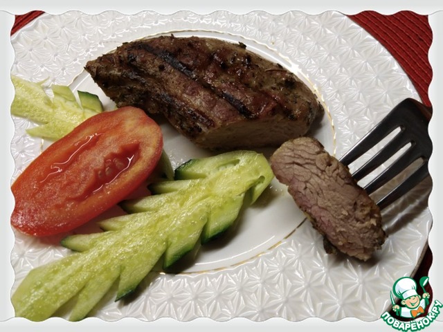 У меня были крупные куски разной свинины, поэтому порезала как могла порционно, отбила, добавила кондари, соль, перец, масло и замариновала до вечера. Сначала готовила в электрогриле, потом допекала в духовке. Получилось вкусное мягкое мясо.