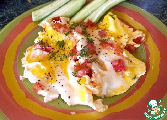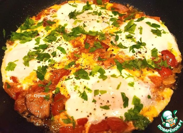 Люблю готовить на завтрак разные виды омлетов, яичниц и т.д. Всё по рецепту, за исключением томатной пасты, не стала добавлять. Если у вас отличные помидоры…паста здесь лишняя. Но… это моё мнение! Вкусный завтрак, ароматный и сытный!