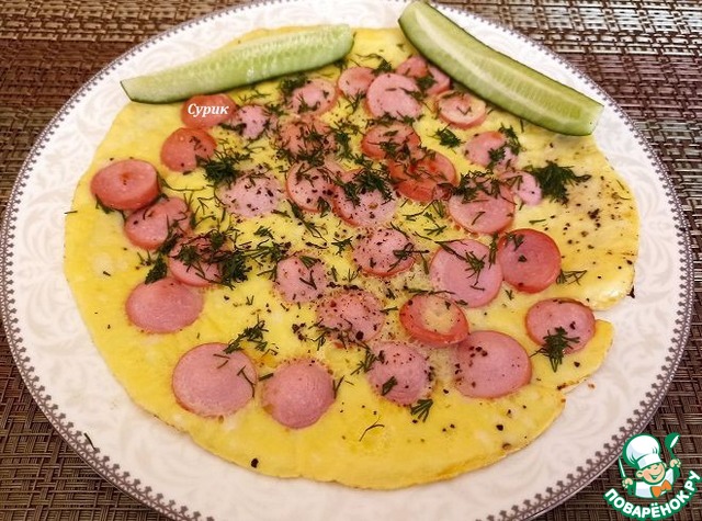 Отличный завтрак! Омлет очень вкусный, сытный. Я добавила ещё нарезанные на полоски сосиски.