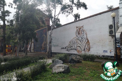 Идем на перекресток улиц Пограничной и Семеновской. И здесь изображен самый крупный тигр в мире и единственный из тигров, освоивший жизнь в снегах. Такого достояния нет ни у одной страны мира. Ну, а для приморцев он – «свой человек». Амба – так называл тигра Дерсу Узала, проводник и друг известного писателя, краеведа и путешественника Владимира Арсеньева. В крае обитает около 480 особей этой полосатой кошки. Для популяризации и сохранения этого некоронованного властелина тайги создан Центр «Амурский тигр». Более 20 лет в последнее воскресенье сентября во Владивостоке проходит яркий и зрелищный праздник «День тигра». Можно пройти своеобразный квест – отметиться возле всех тигриных памятников, пройтись по тигриной тропе или запечатлеть себя на фоне хозяина тайги