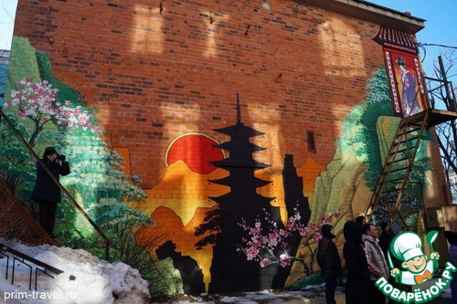 Центр Владивостока. Цветущая сакура, пагода, гейша в эффектном кимоно возле домика под черепичной крышей на фоне восходящего солнца – здесь все связано с Японией. Когда-то на рубеже 19-20 веков это местечко было японским кварталом со своим молельным домом, школой, квартирами, где жили будущие бизнесмены Страны восходящего солнца. В нынешних дворах затерялись следы заводика минеральных вод, магазина продовольственных и промышленных товаров, часов и ювелирных изделий, публичного дома и других японских заведений.
