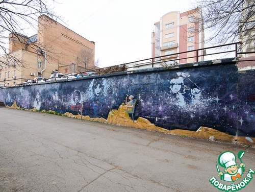 Вот, как пример, разрисованная подпорная стена на тихой вечерней улочке.