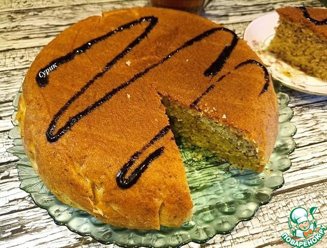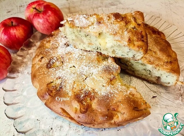 Великолепный пирог! Очень вкусный, воздушный. У меня без слив. Яблоки нарезала небольшими кубиками и добавила вместе и маком в тесто.