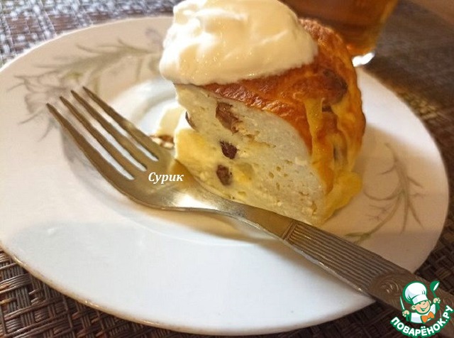 Отличная запеканка получилась! Яйцо положила 3 шт. И добавила изюм с цукатами. Выпекала в МВ. Супер!