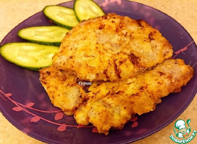 Отличное мясо! Готовила из свиной шеи. Великолепный кляр. Сочные, нежные, мягкие отбивные.