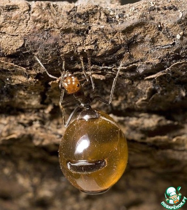 Муравьи-медоносы - крайне ценные особи. Иногда даже другие колонии нападают на них, чтобы украсть нектар. В чём отличие пчелиного мёда от муравьиного? Последний имеет менее вязкую консистенцию, он не такой сладкий и имеет кисловатый привкус. К тому же, в муравьином меде гораздо меньше глюкозы. При этом оба богаты антиоксидантами.