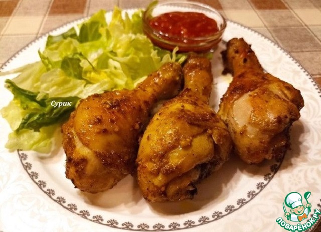 Я готовила куриные голени. Очень вкусно и ароматно получилось! Но…мед я не добавляла. Не хотела я добавлять в этом раз сладость в курицу. Соус у меня отдельно, вкусный.