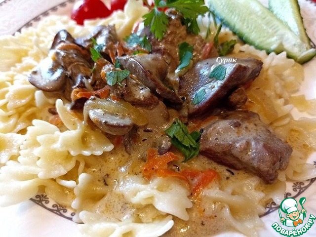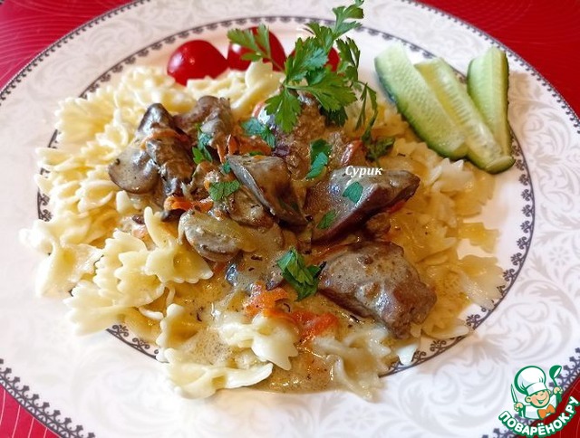 Отличная куриная печень получилась! Сливочно-сливочная! Я обычно делаю с добавлением сметаны или томатной пасты. А со сливками так вкусно получается. Замечательный соус!