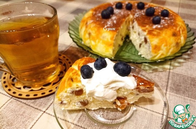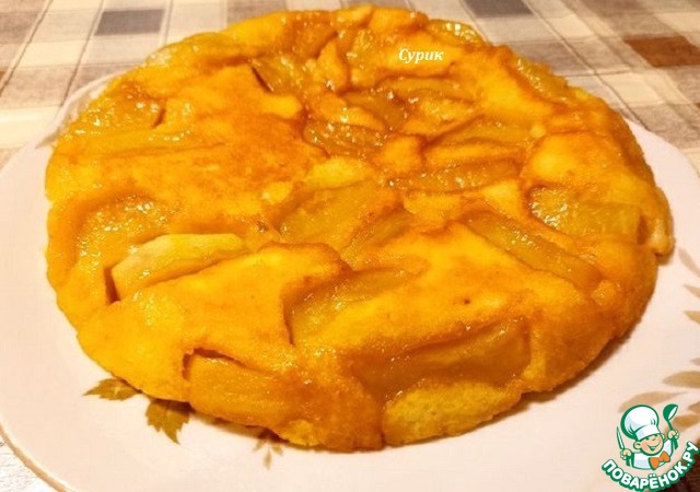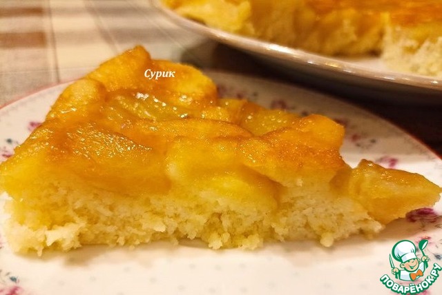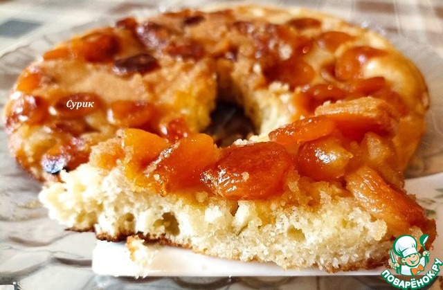 Отличный пирог получился. Я делала с курагой. Немножко подвели меня мои ручки-крючки в процессе перевертывания пирога. Но… всё получилось, как получилось. Очень вкусно, ароматно. Нежный пирог, который нам очень понравился.
