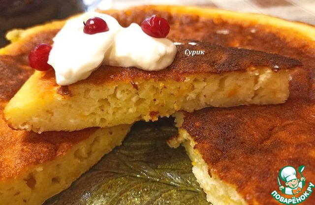Очень вкусный пирог! Добавление апельсиновой цедры … это тааак вкусно! На сковороде у меня очень хорошо вырос, но потом… Быстро и просто приготовила, результат очень порадовал. Чуть дольше подержала на сковороде, поэтому вот такой загорелый.