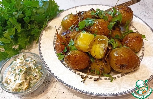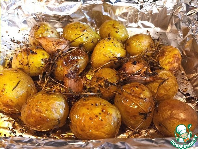 Великолепный картофель! Очень и очень вкусный, ароматный. Тимьян - у меня были веточки в морозилке. После запекания они стали такие хрустящие, вкусные, я их все и съела!