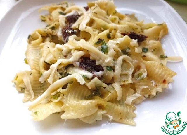 Как же вкусно получилось! Обычные макаронные изделия приобрели совершенно новый вкус! Я всё по рецепту делала. Вяленые помидоры, итальянские травки, сыыыр… вкуснотища!!!