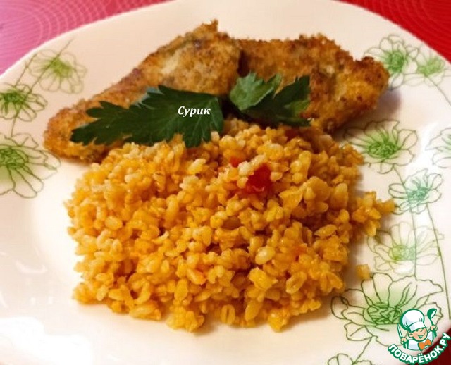 Очень и очень вкусно получилось. Немного изменила процесс приготовления. Сначала обжарила булгур в сливочном масле, а затем добавила к нему уже обжаренные лук и морковь.