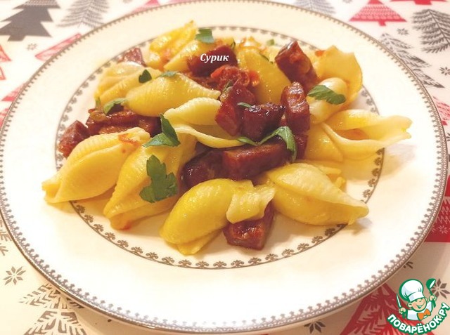Макароны с колбасой