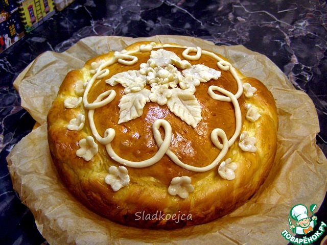 Привлекло поэтичное описание и, конечно, состав теста. Настоящее сдобное, с изюмом. Получился очень вкусный, пышный каравай. Украсила, правда, по-своему.