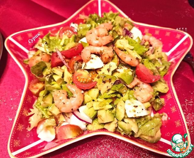 Ох и вкусный салат! Отличное сочетание всех ингредиентов. Креветки очень вкусные и ароматные!