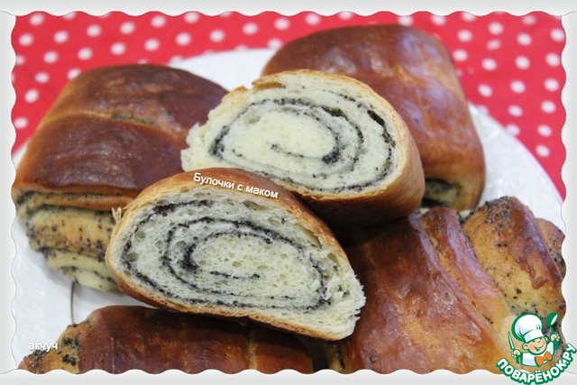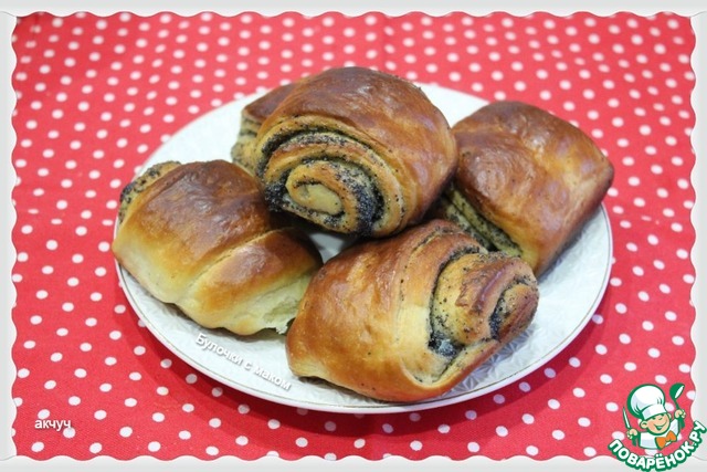 Готовила точно по рецепту, только начинку брала готовую и муки чуток меньше ушло. С такой формовкой знакома, но сегодня почему-то никак не хотела булочка красиво вывернуться. Ну да ладно, не это главное. У меня получилось 17 штук, верх после расстойки смазала сливками, выпекала 25 минут при 180 градусах. Получились вкусные маковые булочки. Нам очень понравились.