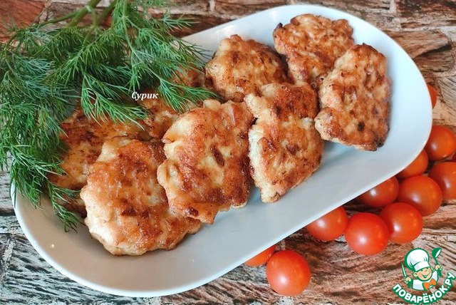 Вкусные оладушки куриные! Готовлю по разным рецептам. И этот нам очень понравился. Обжаренный лучок внес свой вкус в котлеты.
