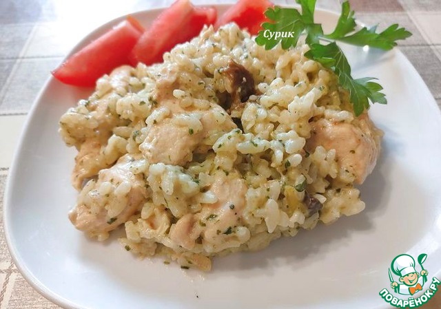 Ризотто с курицей, грибами и луком-пореем